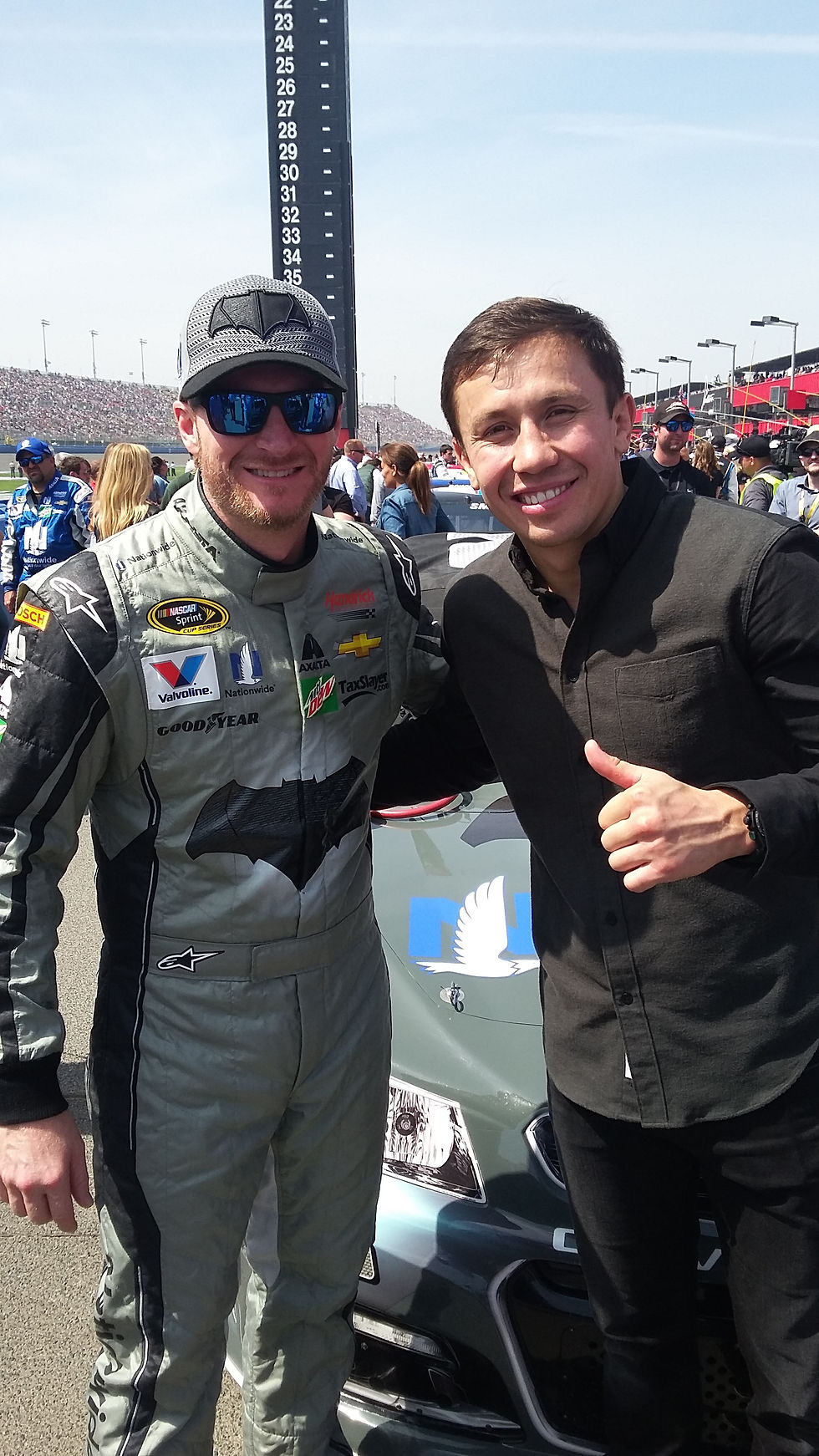 Los Angeles, CA (March 21, 2016) Boxing Superstar and Unified Middleweight World Champion Gennady “GGG” Golovkin took time out from his training camp on Sunday afternoon to attend the 2016 Nascar Auto Club 400 at the Auto Park Speedway in Fontana, CA as special guest of auto racing legend Dale Earnhardt Jr.